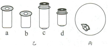 D.向右上方移动装片可使图丙中的细胞物像移至视野中央