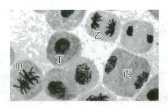 10. 下图为洋葱根尖的细胞分裂图,根据细胞形态结构特点,可以判断甲乙丙丁在细胞分裂过程中的顺序是(