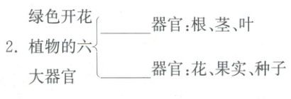 3. 绿色开花植物的结构层次:细胞→______→______→植物体