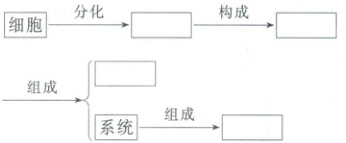 10. 下图表示多细胞生物体的结构层次,请你填写完整: