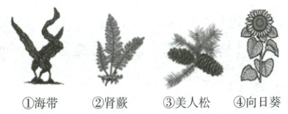 ①海带 ②肾蕨 ③美人松 ④向日葵