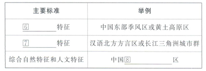 (1) 区域的划定:人们基于对世界的认识和实践的需要,在②____的基础上划定的。