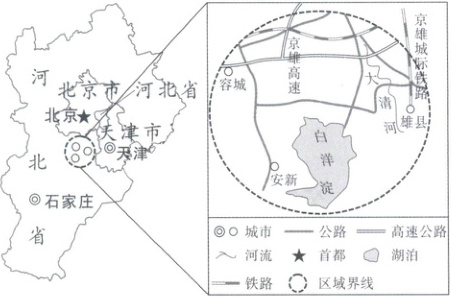 河北雄安新区是继深圳经济特区和上海浦东新区之后又一个具有全国意义的新区。雄安新区首要定位是北京非首都功能的集中承载地,逐步构建“科技、生态、宜居、智能”的绿色生态宜居新城、创新驱动引领区、协调发展示范区和开发发展先行区。下图为雄安新区位置示意图。