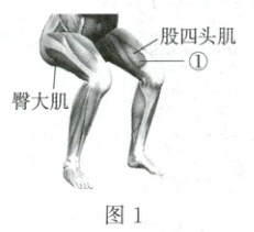 6. 深蹲起是一种既能增强人体下肢力量又能提高人体心肺功能的锻炼形式。图 1 为下蹲动作模式图,图 2 为关节结构模式图,请回答下列问题: