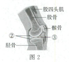 ]关节腔中,提高关节灵活性。图 2 中与膝关节灵活性有关的结构还有[②