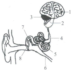 8. 下图表示人耳和脑的联系示意图,请据图分析回答问题。