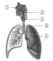 (1)鼻腔 (2)[②]咽 (3)会厌软骨 (4)[③]喉 (5)[④]气管 (6)[⑤]肺