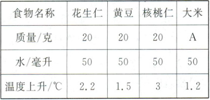 1. (2021·滨州)食物所含能量的多少可以用热价表示,食物的热价是指1克食物氧化分解或在体外燃烧时所释放的热量,小明同学对几种不同食物的热价进行测定,实验结果如表,以下说法你不赞同的是(