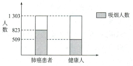 2. (2024·潍坊)某项对肺癌患者和健康人中吸烟人数的调查数据如图所示,可以得出的合理结论是(