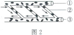 12. 斑马鱼幼鱼早期体小且透明。某小组利用 2 mm 斑马鱼幼鱼制成临时装片(如图 1),用显微镜观察其全身血管和血流情况,并绘制血液流动示意图(如图 2),①②③代表血管,箭头代表血流方向。下列说法正确的是(
