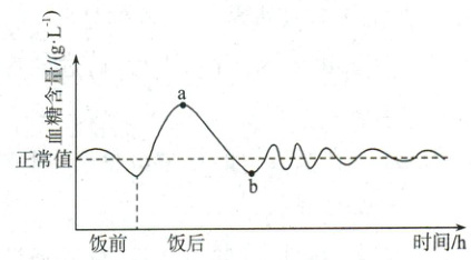 8. 下图为某人在饭前和饭后血糖(血液中葡萄糖)含量变化曲线图。引起图中 a~b 段血糖浓度快速下降的激素是(