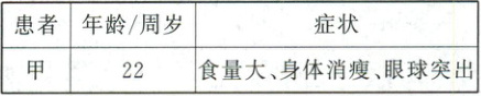 5. 下表是某医生记录的一位患者的病症,他们患病分别是由哪种激素分泌异常引起的(