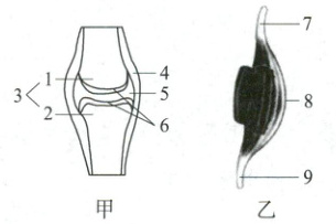1. (2024·滨州)校园内的“阳光体育”活动促进了青少年的健康成长。甲、乙两图分别是关节和骨骼肌的结构示意图。下列叙述正确的是(