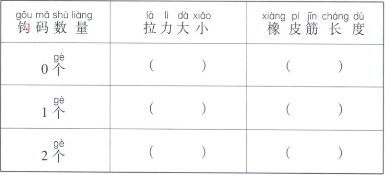 橡皮筋长度:原长(或具体长度,若有给定原长数值则填,无则填原长)。