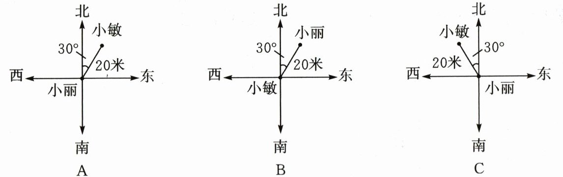 5. “小敏在小丽的北偏东 $ 30^{\circ} $ 方向 $ 20 $ 米处”,下列选项与这句话相符的是(