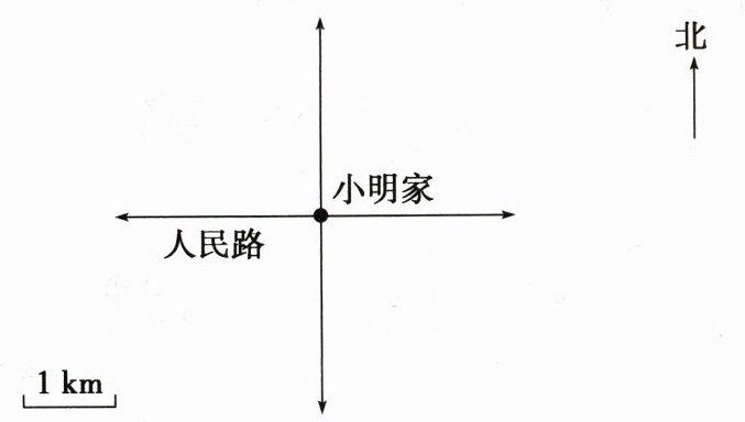 (3) 在小明家正南方向 $ 1 \, km $ 处有一条高速公路,它与人民路平行。(2 分)