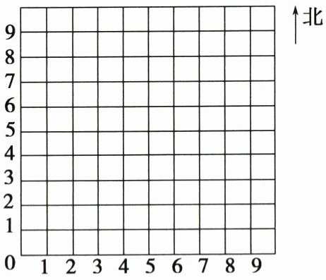 4. 如果一个小正方形的对角线长 $ 100 \, m $,则点$(0,0)$东偏北 $ 45^{\circ} $ 方向 $ 200 \, m $ 处是点(
