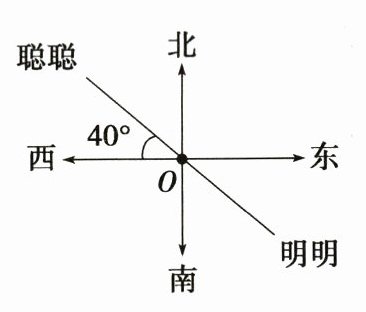 5. 如右图,以O点为观测点,聪聪在西偏北40°的方向上,明明在聪聪(