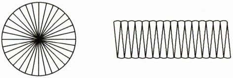 7. 如图,把一个半径 4 厘米的圆平均分成 32 份,再拼成一个近似的长方形,拼成的长方形的长是(