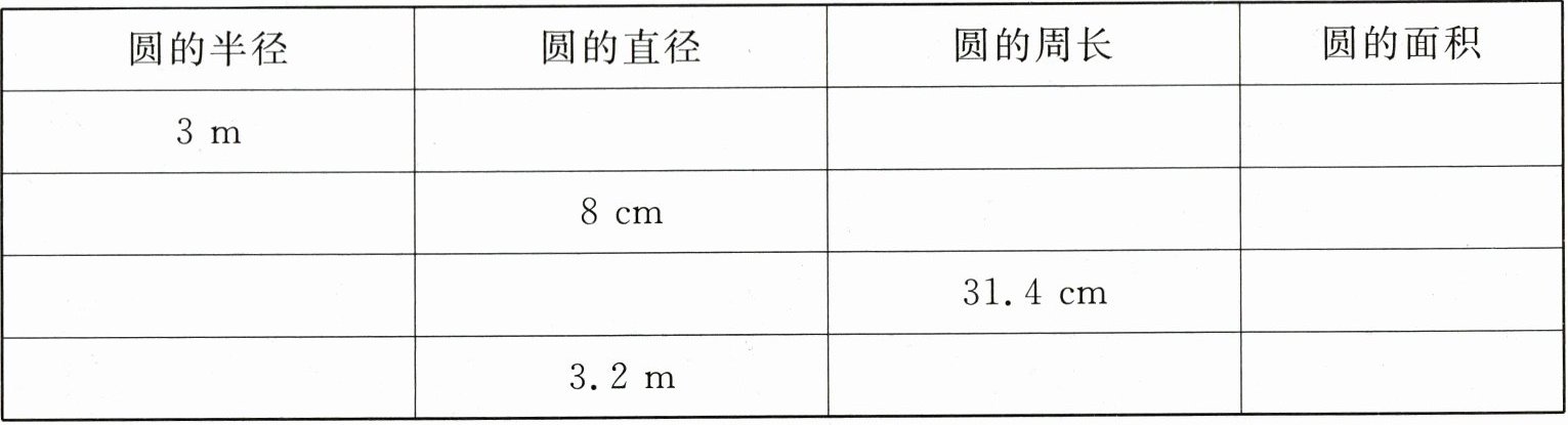 |圆的半径|圆的直径|圆的周长|圆的面积|