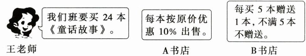 5. 如图,两家书店的《童话故事》每本单价都是$10$元,请你算一算,王老师到哪家书店购买比较便宜? (6分)