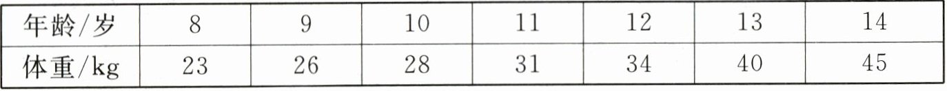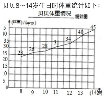 (1) 贝贝 8~14 岁每年生日时测量的体重如下表: