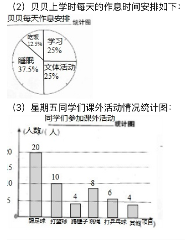)小时。(3) 星期五全班同学参加课外活动的情况统计如下表: