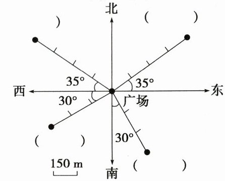 (2) 人民公园在广场的西偏北 $ 35^{\circ} $ 方向上,距离是 $ 600 \, m $;