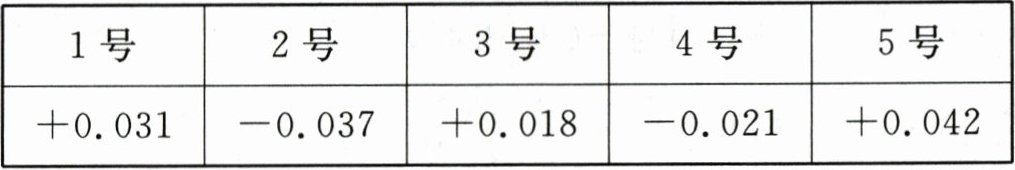 18. (6分)某工厂生产一批精密的零件,要求是$\Phi50^{+0.04}_{-0.03}$($\Phi$表示圆形工件的直径,单位:mm),抽查了5个零件,数据如下表,超过规定直径的记作正数,不足规定直径的记作负数.