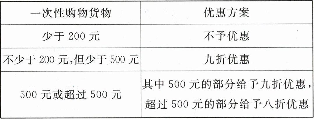 元;(2)若某顾客在该超市一次性购物$x$元,当$x$小于500但不小于200时,他实际付款