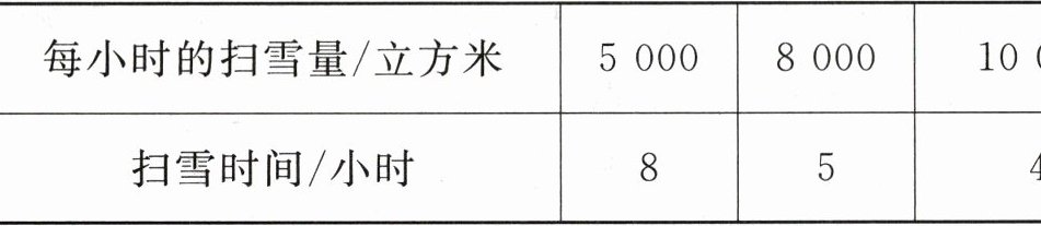 | 每小时的扫雪量/立方米 | 5 000 | 8 000 | 10 000 |