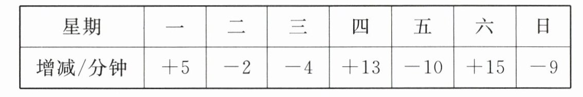 (1)+15-(-10)=15+10=25(分).答:读书最多的一天比最少的一天多读了25分钟.(2)|-2|+|-4|+|-10|+|-9|=2+4+10+9=25(分).答:实际比计划少读书的几天时间里一共少读了25分钟.(3)[(+5)+(-2)+(-4)+(+13)+(-10)+(+15)+(-9)]+30×7=8+210=218(分).答:小伟该周实际读课外书218分钟.