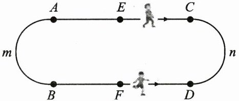 (2)小明和小英在如图所示的环形跑道上练习跑步,已知小明、小英两人分别从点 $ E $、$ F $ 两处同时沿着箭头方向出发,小明的速度是 6 m/s,小英的速度是 4 m/s.