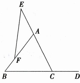 16. (6 分)如图,在 $ \triangle ABC $ 中,点 $ D $,$ E $ 分别在 $ BC $,$ CA $ 的延长线上,点 $ F $ 在 $ AB $ 上。
