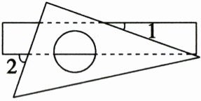 5. 如图,将一块三角板叠放在直尺上. 若$\angle 1 = 20^{\circ}$,则$\angle 2$的度数为( )