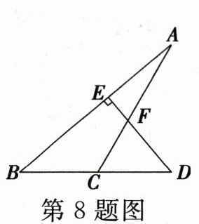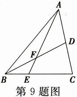 9. 如图,点$E是BC$上的一点,$EC = 2BE$,点$D是AC$的中点,且$S_{\triangle ABC} = 12$,则$S_{\triangle ADF}-S_{\triangle BEF} = $(