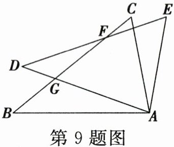9. 如图,已知△ABC≌△ADE,∠DAC= 60°,∠BAE= 100°,BC与DE相交于点F,BC与AD相交于点G,则∠DFB的度数为(
