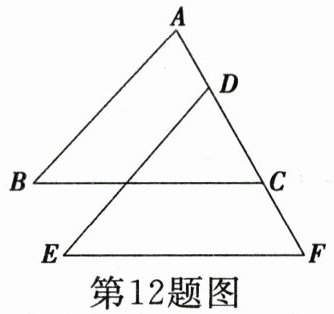 12. 如图,将△ABC沿射线AC平移得到△DEF. 若AF= 27,DC= 11,则AD=