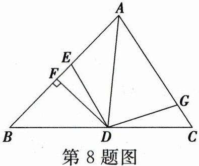 8. 如图,AD是△ABC的角平分线,DF⊥AB,垂足为F,DE= DG,△ADG和△AED的面积分别为50和38,则△EDF的面积为(