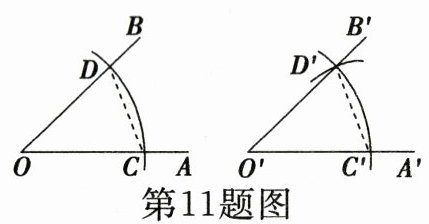 11. 用直尺和圆规作一个角等于已知角的示意图如图所示,则说明∠A'O'B'= ∠AOB的依据是