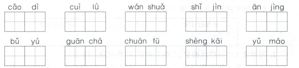 二、汉字之美,美在其形。看拼音,将词语写美观。(10分)