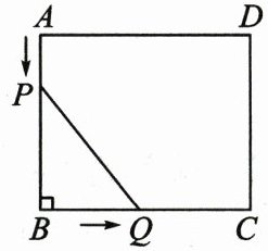 22. (10 分)如图,在长方形 $ABCD$ 中,$AB = 5 cm$,$BC = 6 cm$,点 $P$ 从点 $A$ 开始沿边 $AB$ 向终点 $B$ 以 1 cm/s 的速度移动,与此同时,点 $Q$ 从点 $B$ 开始沿边 $BC$ 向终点 $C$ 以 2 cm/s 的速度移动. 如果 $P$,$Q$ 分别从 $A$,$B$ 同时出发,当点 $Q$ 运动到点 $C$ 时,两点停止运动. 设运动时间为 $t$ s.