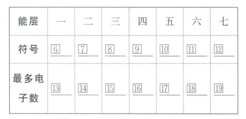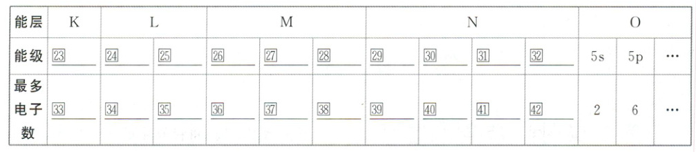 ⑤能量 ⑥K ⑦L ⑧M ⑨N ⑩O ⑪P ⑫Q ⑬2 ⑭8 ⑮18 ⑯32 ⑰50 ⑱72 ⑲98 ⑳越高 ㉑E(K)<E(L)<E(M)<E(N)<E(O)<E(P)<E(Q)