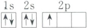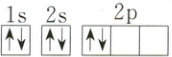$1s$ $2s$ $2p$ $\uparrow\downarrow$ $\uparrow\downarrow$ $\uparrow\uparrow\uparrow$