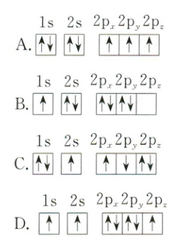 3.(2025·绵阳高二月考)下列$N$原子轨道表示式表示的状态中,能量最高的是 (