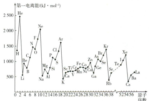 失去一个电子;第一电离能数值越大,原子越⑥难