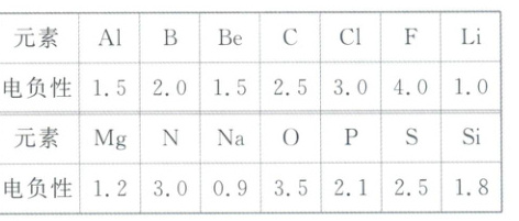 2. 某些元素的电负性数据见下表,下列判断不正确的是 (
