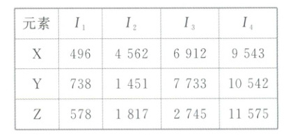 4. (2025·丽水高二质检) X、Y、Z 是同周期主族元素,$ I $ 为电离能,单位是 $ kJ \cdot mol^{-1} $。