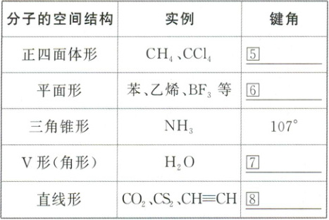 性。键角是描述分子④空间结构