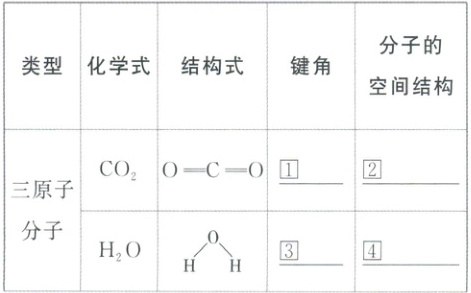 ①180° ②直线形 ③105° ④V形(角形) ⑤120° ⑥平面三角形 ⑦107° ⑧三角锥形 ⑨109°28′ ⑩正四面体形 ⑪四面体形 ⑫①②③④⑤